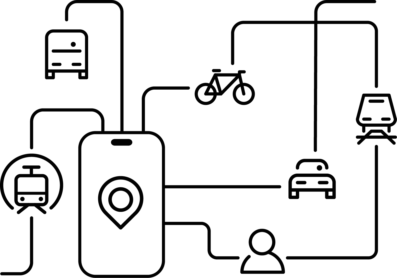 • Integration of various demand-responsive transport models, as well as on-demand services like bike-sharing, car-sharing, e-scooters, e-charging infrastructure and parking